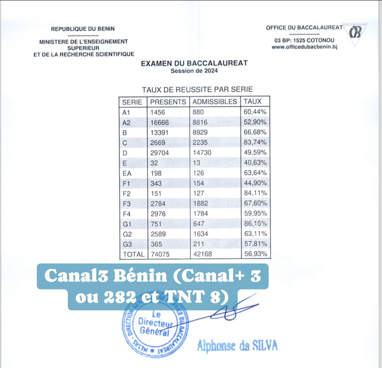 La Direction de la Direction de l’Office vient de faire la délibération des résultats du Baccalauréat 202: Sur le plan national, un taux de réussite est de 56,93% a été enregistré.