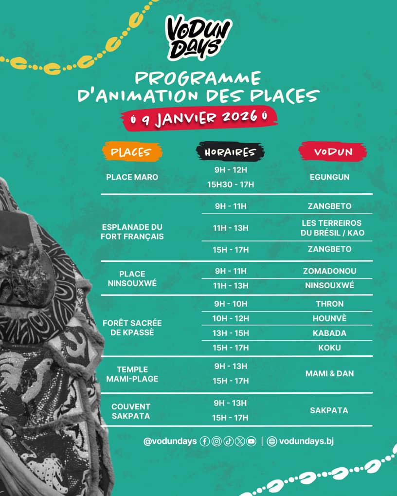 Le programme officiel a été dévoilé par le gouvernement ce mardi 30 décembre 2025. Il prévoit des cérémonies cultuelles, des performances artistiques, des expositions, des concerts et des animations populaires. Tout a été pensé pour valoriser le patrimoine immatériel du Vodun et offrir une expérience culturelle immersive aux visiteurs venus du Bénin et d’ailleurs.
